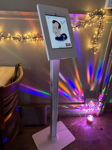 Late in 2023 we launched an innovative and exciting new service, where caricatures are drawn digitally on a tablet, then sent instantly to a self-serve device. Guests can then distribute their pictures to their own device(s) and even upload to social media apps within seconds!